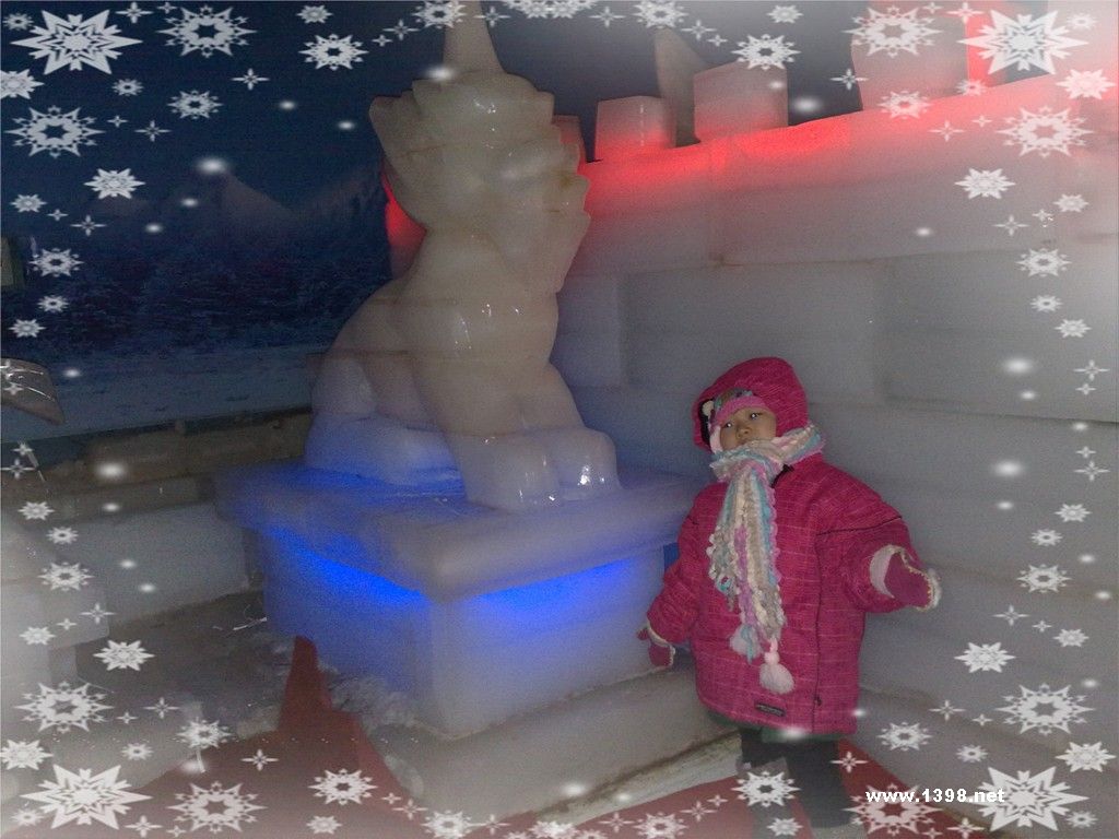 先看了一会儿冰雕,然后就进入到雪园,有点失望,雪园很小,地上的“雪”其实都是些冰渣,天花板上偶尔下起雪来,其实也只是些冰沫飘下来。