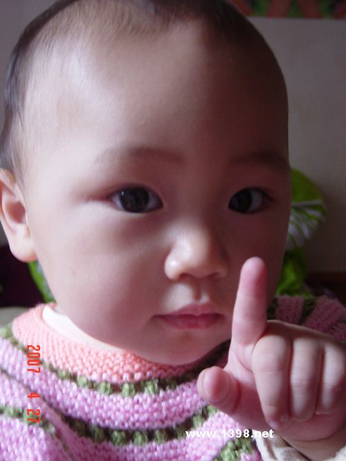 五一回家,要过周岁了,换上一身“姑姑装”(传统作法:周岁要穿一身姑姑买的衣服哦),在自己床上摆几个POSE,亮相一下~~